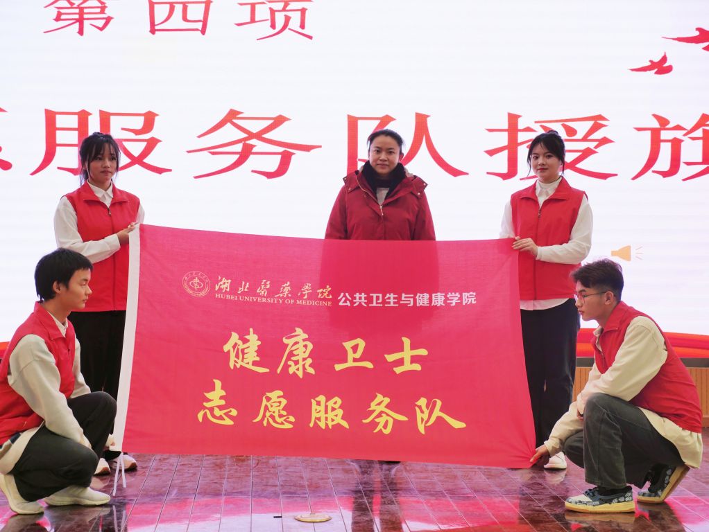 陈晓林副院长为学院“志愿服务明星”颁发了证书,牛佳副书记为志愿服务队授旗,鲜艳的旗帜见证“健康卫士志愿服务队”的成立。