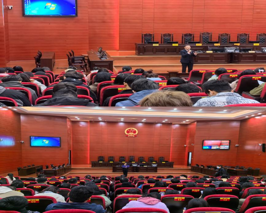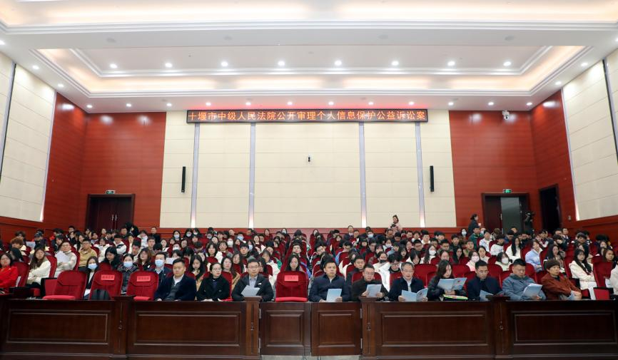 本次庭审案件是十堰法院首次适用《中华人民共和国个人信息保护法》审理的民事公益诉讼案件,我校师生和部分省、市人大代表、政协委员,市场监督管理局、市委网信办工作人员,以及其他高校师生代表等200余人旁听了庭审。