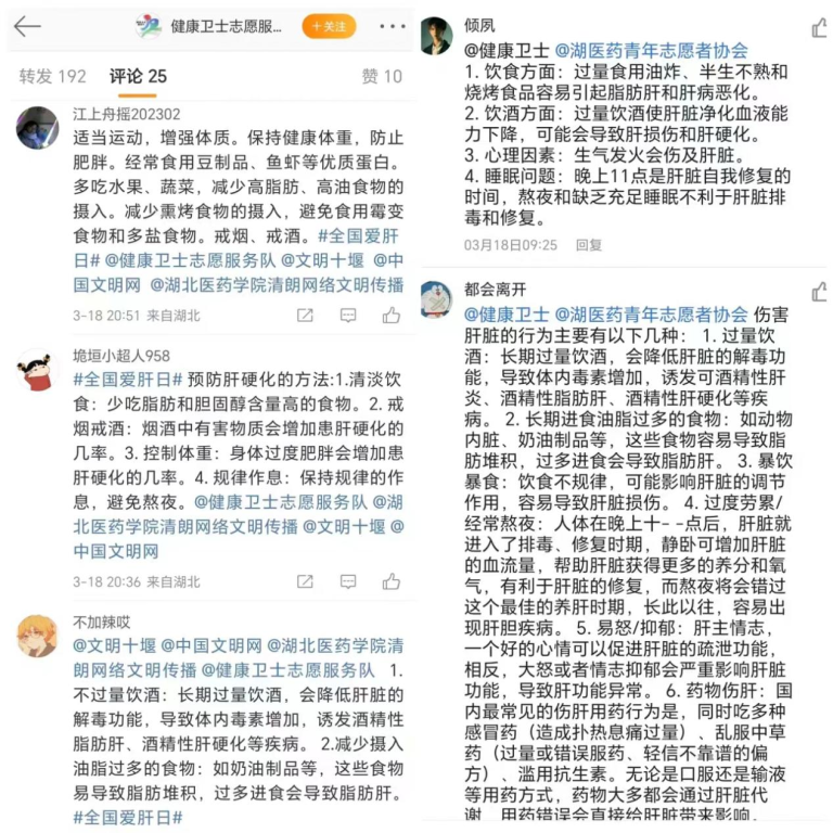 本网讯(通讯员 杨天波 王文杰)为普及肝病预防知识,提高同学健康意识。太阳成tyc7111cc集团健康卫士志愿服务队于3月18日第24个全国爱肝日之时,围绕主题“早防早筛,远离肝硬化”,面向湖北医药学院及湖北医药学院药护学院全体学生,在QQ和微博上开展线上宣传活动。