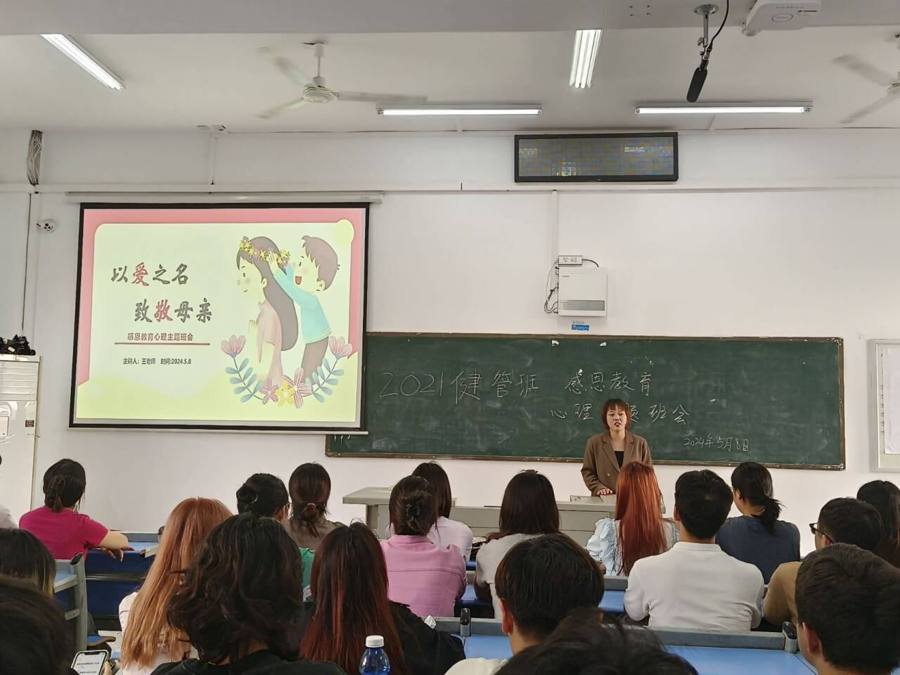 本网讯(通讯员 冯楠琦)为弘扬中华民族传统美德,培育和践行社会主义核心价值观,在母亲节来临之际,2021级健康服务与管理班级开展了“以爱之名,致敬母亲”的心理主题班会。本次班会由辅导员王晶艳主持、学院学生工作办公室副主任石中玉参加活动。