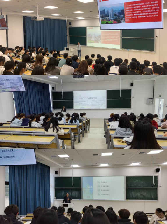 公共事业管理专业负责老师吕宜灵、健康服务与管理专业负责老师曾智、信息管理与信息系统专业负责老师喻勇、信息资源管理专业负责老师桂晓苗、预防医学专业负责老师邬闻文、智能医学工程专业专业老师王少兵,他们结合自身的学术研究和实践经验,深入浅出地讲解了各自专业的专业设置、发展前景、行业需求以及职业规划等。老师们生动有趣的讲解和富有启发性的案例引发了学生们的浓厚兴趣,现场气氛热烈,掌声不断。