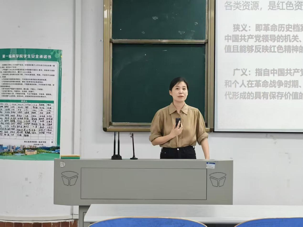 本网讯(通讯员 文湘怡)为传承红色基因,赓续精神血脉,增强青年学生的思想觉悟与使命担当,5月8日下午15:00,湖北医药学院特邀十堰市档案馆在5211教室开展了“红色薪火传,青春筑梦行——档案思政活动”课程,由十堰市档案馆宣传科科长张娟主讲。