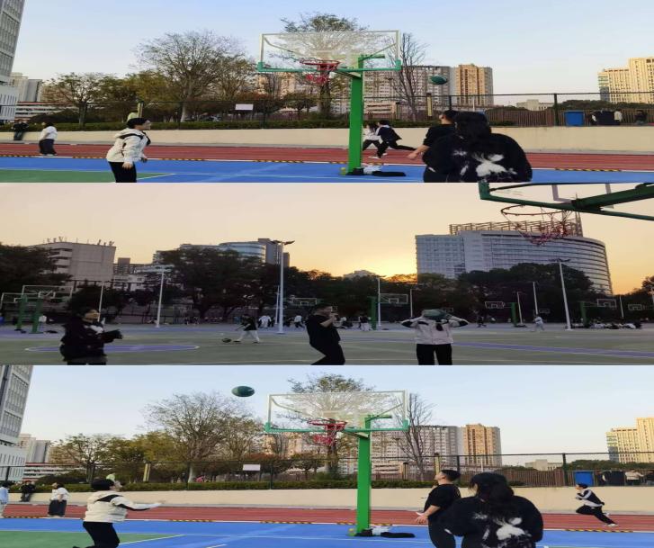 球场上,热闹氛围即刻拉满。有同学大胆尝试投篮,篮球裹挟着雀跃的心情飞向篮筐,围观的伙伴们为每一次精准瞄准、每一次险些命中欢呼喝彩;不少师生组队传球跑动,灵活的脚步卸下了科研路上的疲惫,满是松弛与轻快;日落时分,暖黄的余晖温柔笼罩着球场,大家或是并肩靠在球架旁,闲聊课题之外的生活琐事,或是举起手机抓拍夕阳下的灿烂笑脸。原本因课题组分散而略显生疏的距离,在阵阵欢声笑语中悄然消融,心与心的联结愈发紧密。