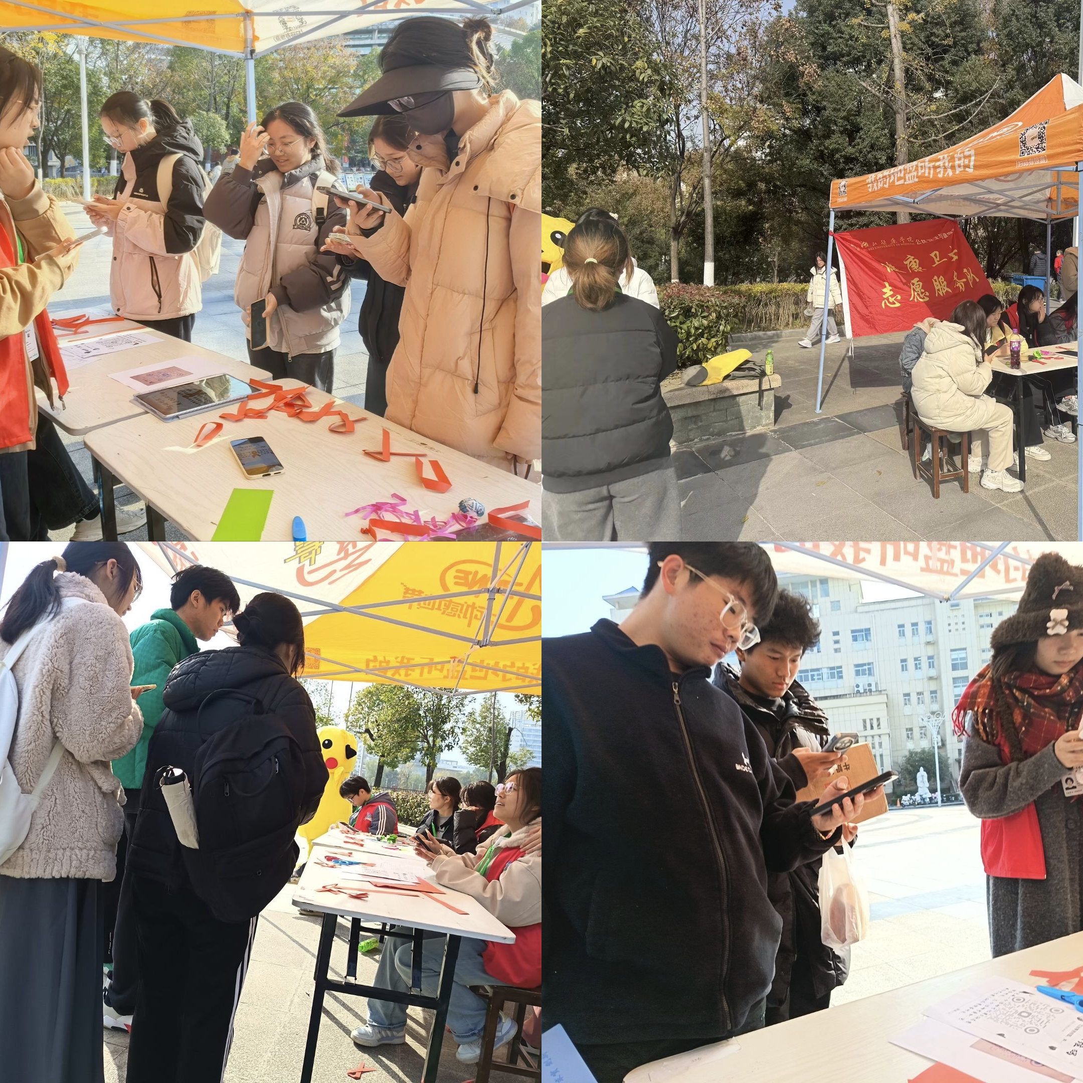 本网讯(通讯员:胡琬玉 李尚蔚 王心怡)2025年 12月 1日世界艾滋病日当天,健康卫士志愿服务队在文明广场举办“红丝带进校园,共筑防艾梦”主题活动,以“社会共治,守正创新,终结艾滋”为核心,为全校师生普及防艾知识。